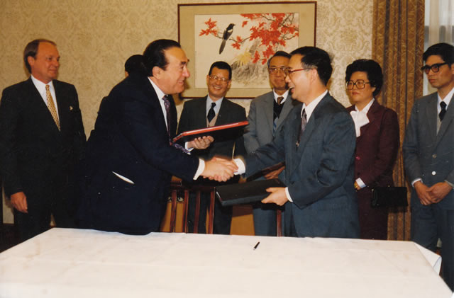 在世图公司茁壮成长的同时,1988年,中图公司又与英国培格曼出版公司在北京合作创建了国内第一家中外合资的出版社—万国学术出版社,时任中国驻英大使冀朝铸出席签字仪式。万国学术出版社由我担任董事长,严文江任总经理,专门出版中国专家、学者撰写的学术著作,以英文版为主,由英国合资方负责向全世界销售。